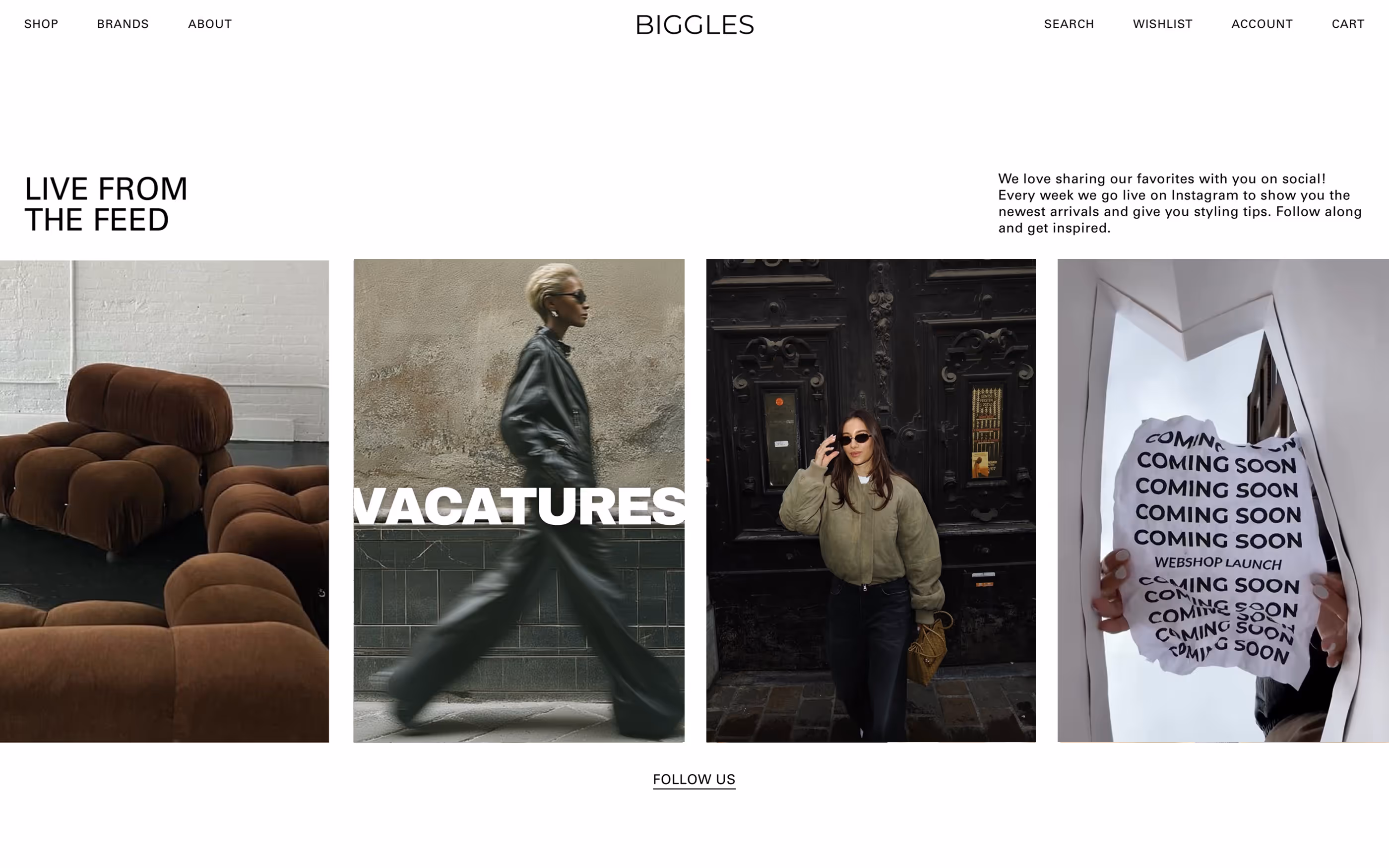 Biggles offers an extensive collection that remains calm and curated, and that balance guided the digital translation. The website is minimal and user-friendly, with refined details that add character without distraction, and a scalable setup that supports the daily needs of the store.