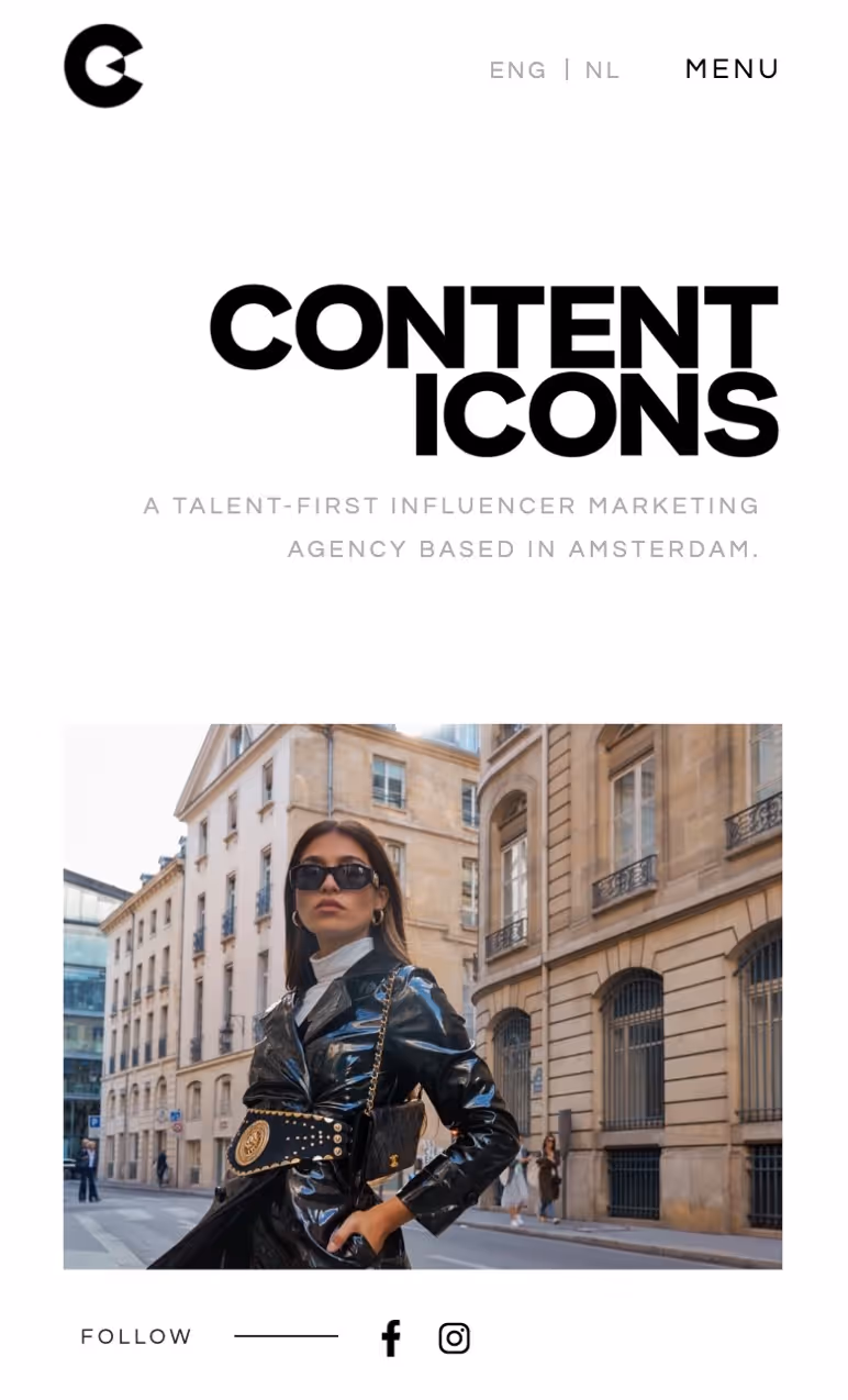 Content Icons is an influencer marketing agency for artists & (digital) talents. Our intention was to design a commercial platform and suited it up with an artistic fun jacket. Implementing a subtle colour pallet gives the website a professional and mature appearance, yet in order to keep Content Icons creativity alive we incorporated the playful characteristics of the company. As this was their first website, it was an extra exciting challenge to offer them a fitting website that matched their vision.