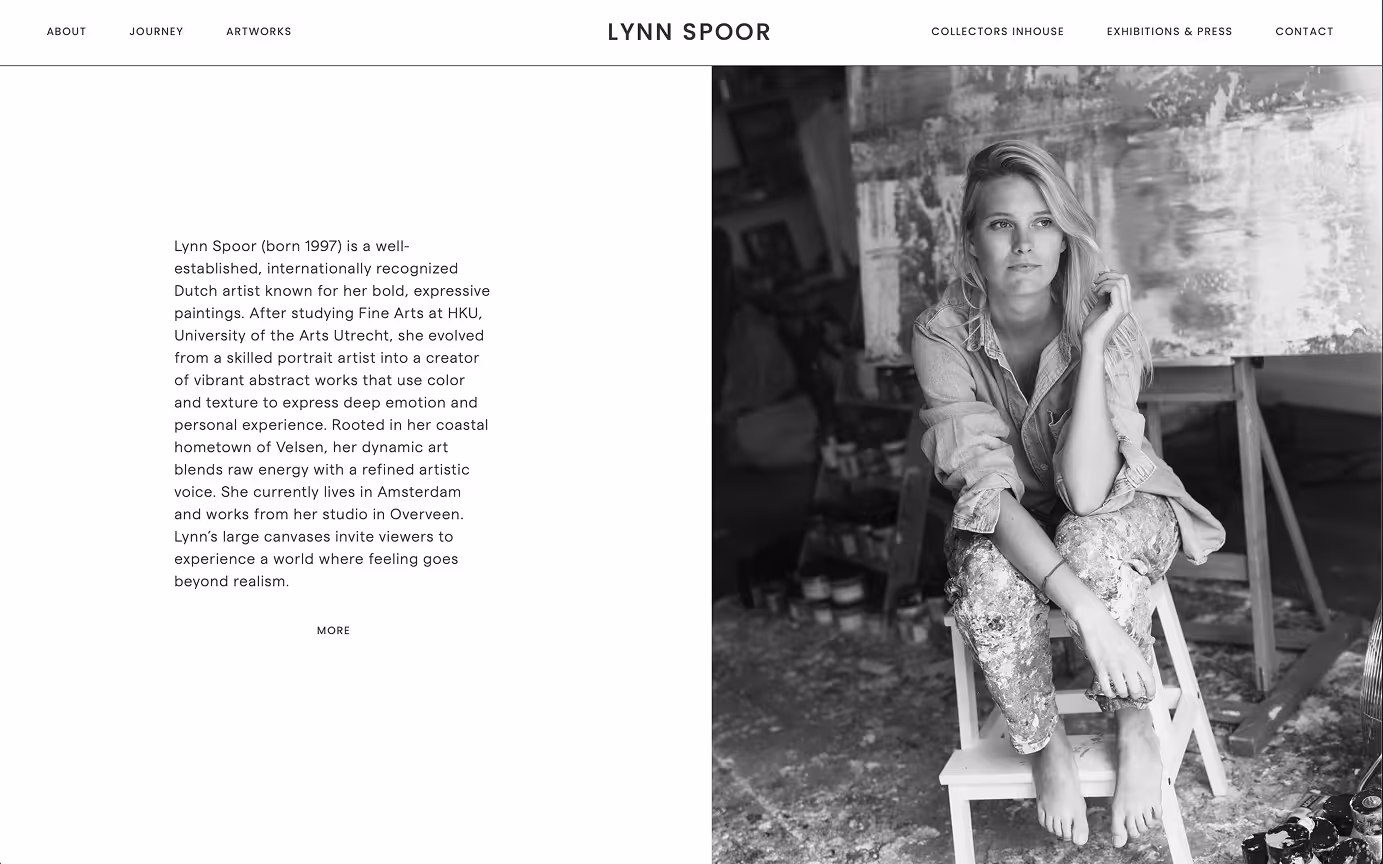 Lynn Spoor, is a bright and well-respected artist from The Netherlands. Lynn makes paintings with a young positive energetic characteristic. Her latest piece is heavily inspired by the colors and textures of Mediterranean stones and their environment. To give justice to the contrasting nature of her piece; colors incorporated on the website remain subtle, calmly mixed with powerful and raw details. We try to make the art jump 'out of the canvas' and to keep the focus on that.