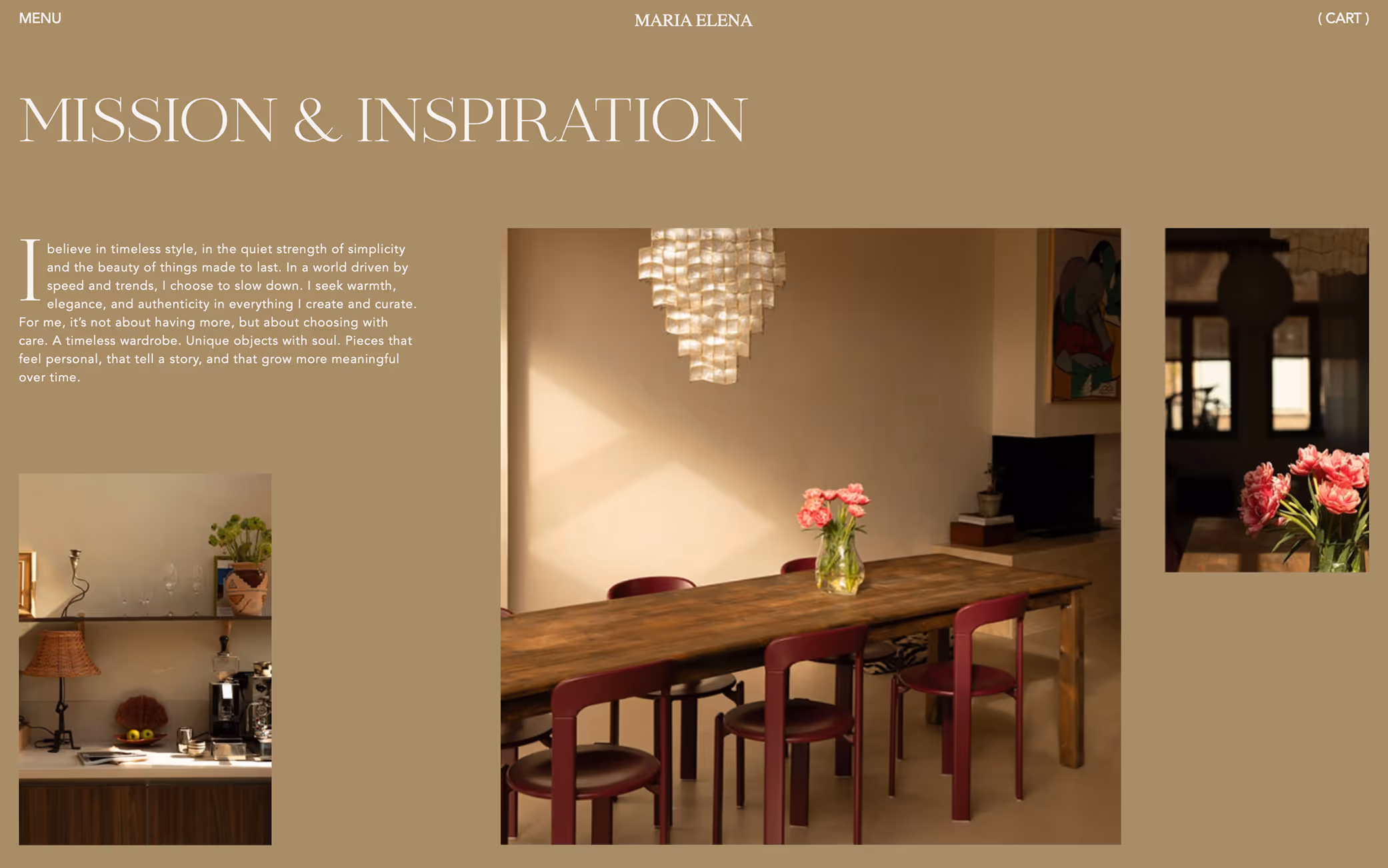 For Maria Elena Groenewoud, we created a fully custom, branded website that invites visitors into her world. From recipes to a carefully curated selection of interior pieces, the platform reflects her eye for timeless design and attention to detail.